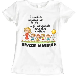 Tshirt idea regalo Grazie Maestra – i bambini nascono con le ali, gli insegnanti insegnano a volare