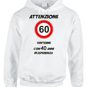 Felpa Compleanno 60 anni Attenzione ventenne con 40 anni di esperienza – felpa con cappuccio – idea regalo