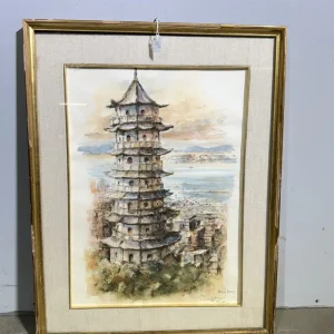 Acquarello primi ‘900 Pagoda, firmato,