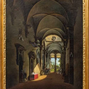 Ambito di Giovanni Migliara (1785-1837), Interno di chiesa con scena storica