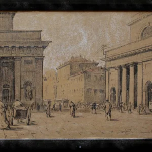 Aldo Conti (1890 – 1988) Porta Venezia Disegno a carboncino, pastello e biacca su cartone