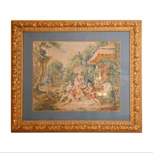 Acquerello Francese del Sec. XIX- Colazione all’aperto