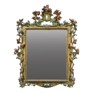 Specchiera in legno intagliato, laccato e dipinto. Venezia, XIX secolo.