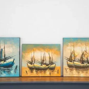 Barca su acqua, acrilico su tela, 2000, set di 3