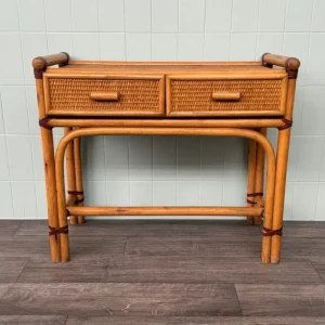 Consolle In Bambù Scrittoio Anni 80 Con Due Cassetti Tavolino Vintage