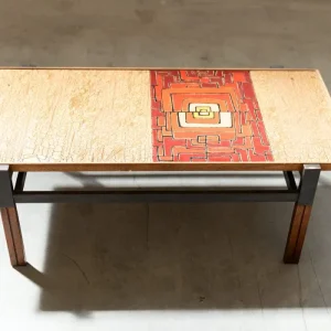 Mid-Century Italian Afrormosia, Tavolino da caffè in ferro e resina colorata, anni 1950