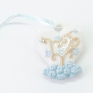Bomboniera cavallino a dondolo azzurro in porcellana