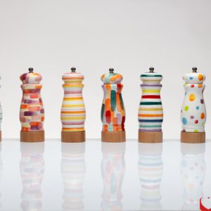 Bomboniera macinasale dipinto a mano con base in legno e fialetta sale
