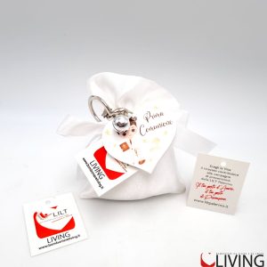 Bomboniera linea solidale LILT-LIVING sacchetto con portachiavi bimbo comunione