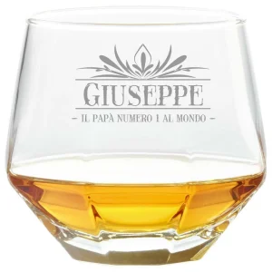 Bicchiere da Whisky diamante diamond glass tumbler inclinabile con incisione Festa del Papà PERSONALIZZABILE CON NOME – il Papà numero 1 al mondo – Regalo Papà