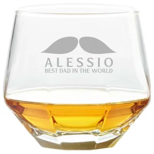 Bicchiere da Whisky diamante diamond glass tumbler inclinabile con incisione Festa del Papà PERSONALIZZABILE CON NOME – Best dad in the world – Regalo Papà