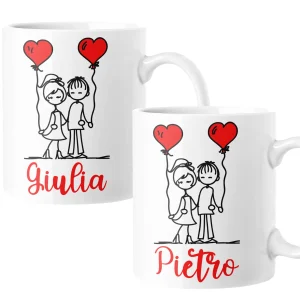 Coppia Tazze Sanvalentino Personalizzabile Fumetto Palloncini Personalizza con Nome Amore Innamorati Fidanzati Regalo Lui e Lei Mug 11 Oz