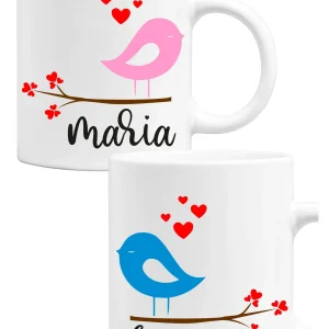 Coppia Tazze Mug Sanvalentino Personalizzabile Uccellini Personalizza con nome Amore Innamorati Fidanzati Regalo Lui e Lei