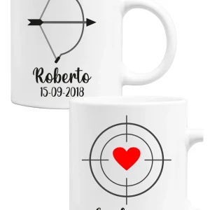 Coppia Tazze Mug Sanvalentino Personalizzabile Freccia Mirino Personalizza con nome Amore Innamorati Fidanzati Regalo Lui e Lei