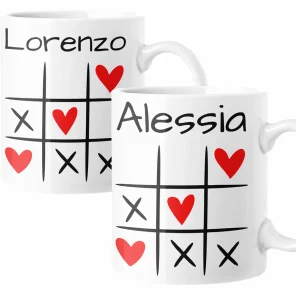 Coppia Tazze Sanvalentino Personalizzabile Griglia Tris Cuori Personalizza con Nome Amore Innamorati Fidanzati Regalo Lui e Lei Mug 11 Oz