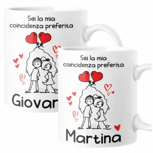Coppia Tazze Sanvalentino Personalizzabile Sei la mia coincidenza preferita Personalizza con Nome Amore Innamorati Fidanzati Regalo Lui e Lei Mug 11 Oz