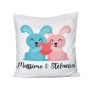 Cuscino SanValentino Personalizzabile Coniglietti personalizzabile con nome Love Innamorati 40×40 cmidea regalo