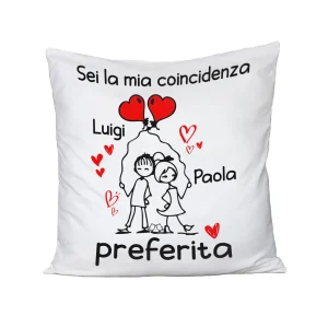 Cuscino SanValentino Innamorati PERSONALIZZABILE CON NOME Sei la mia coincidenza preferita – Love – Amore – Regalo in cotone 40×40 cm