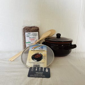 Set Tegame diametro 17 cm Colì 2 mestoli in legno retina spargifiamma riso rosso integrale