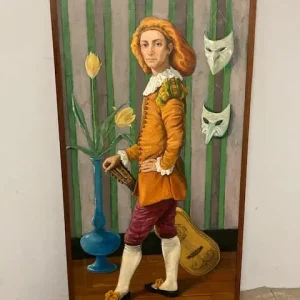 Dipinto olio su tela “Omaggio a Watteau“ Fanciullo in costume – L. Palermo, 1981