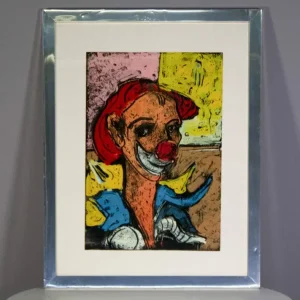 Quadro raffigurativo pagliaccio, con cornice argentata 1970