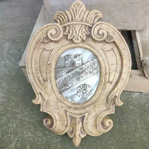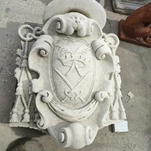 Stemma in marmo nembro giallo e al centro in marmo calacatta