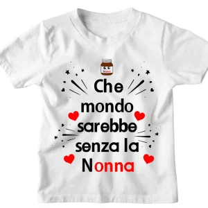 Tshirt Maglietta Bambino Bambina Divertente Nutella Nonna Che Mondo sarebbe senza la Nonna – Idea Regalo