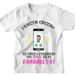 Tshirt Maglietta Bambino Bambina Divertente Nonno Figlia Mamma Pronto Nonno? Mi vieni a prendere? Tua Figlia mi ha scocciata! – Idea Regalo