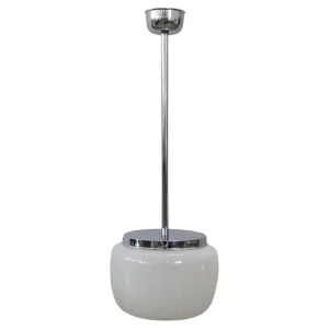 Lampada a sospensione in vetro e metallo cromato, italia anni ’60