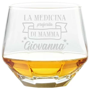 Bicchiere da Whisky Mamma Personalizzabile Diamante Diamond Glass Tumbler inclinabile Festa della Mamma La medicina preferita di mamma – Bicchiere in vetro 36 cl