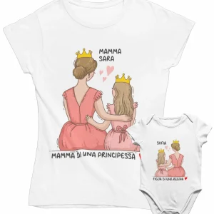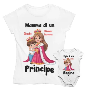 Coppia T-Shirt Maglietta Mamma Body PERSONALIZZABILE Mamma Madre Figlia Principessa Regina Festa della Mamma