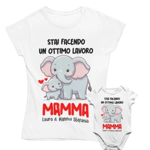 COLORFAMILY Coppia T-Shirt e Body PERSONALIZZABILE Stai facendo un ottimo lavoro Mamma Figlio Figlia Donna Neonato Festa della Mamma Maglietta manica corta Taglie dalla S alla XL e da 0 a 24 mesi