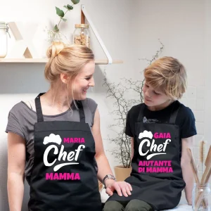 Coppia Grembiuli cucina PERSONALIZZABILI divertenti Mamma Figlia Festa della Mamma Chef & Aiutante Idea Regalo Mamma