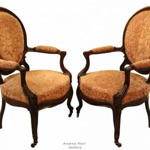 Antica Coppia di Poltrone Luigi Filippo in palissandro – 19°secolo