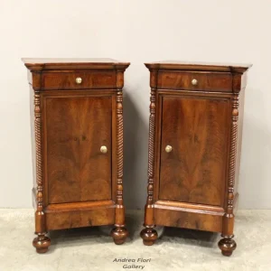 Antica coppia comodini Luigi Filippo in noce Italia 19°secolo