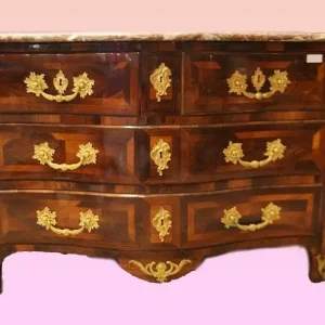 Splendido cassettone francese stile Reggenza del 1700 con bronzi e piano in marmo