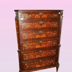 Settimino olandese del 1700 in legno di mogano con intarsi stile impero
