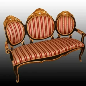 Stupendo salotto italiano divano con 2 poltrone laccato e dorato stile Luigi Filippo del 1800
