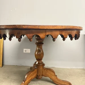 Antico tavolo rotondo in masso di noce, ‘800 Carlo X, 78×107 cm