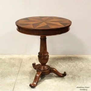 Antico tavolino Luigi Filippo in noce intarsiato Italia 19°secolo