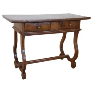 Antico tavolinetto in noce e piano in pelle, epoca fine ‘800, mis h67, l42, p33.