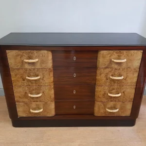 Bellissimo comò art deco razionalista in radica chiara e palissandro anni 1940