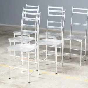 Sedie da pranzo in alluminio e pelle marrone di Ycami, anni ’80, set di 6