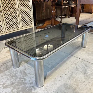 Tavolino da fumo anni 70 cromato e vetro fumè – modello Sesann Frattini per Cassina .