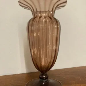 Vaso in vetro di Murano epoca 1930 colore Ambra . Lavorazione a costine