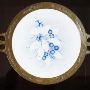 Vassoio antico in ottone e ceramica con manici – Eleganza anni ’50/’60