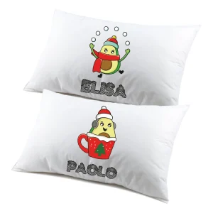 Coppia di federe PERSONALIZZABILI matrimoniali natalizie divertenti Avocado Neve Buon Natale Personalizza con nome