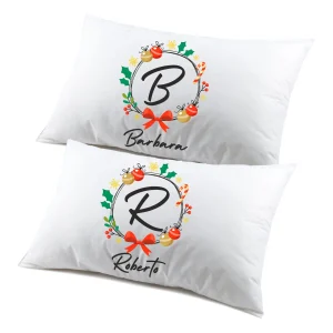 Coppia di federe PERSONALIZZABILI matrimoniali natalizie divertenti con Iniziale e Nome Buon Natale Personalizza con nome
