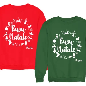 Coppia di Felpe Natale Girocollo PERSONALIZZABILI CON NOME Buon Natale divertenti idea regalo natale Unisex