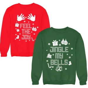 Coppia Felpe Girocollo Natale Natalizie lui e lei Feel the Joy Jingle My Bells Unisex